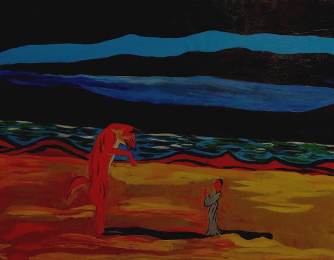 《高僧与红狼》 100×128cm布面油画2020年