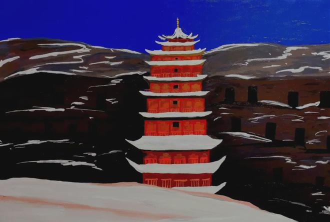 《雪后莫高窟》 90×132cm布面油画 2023年