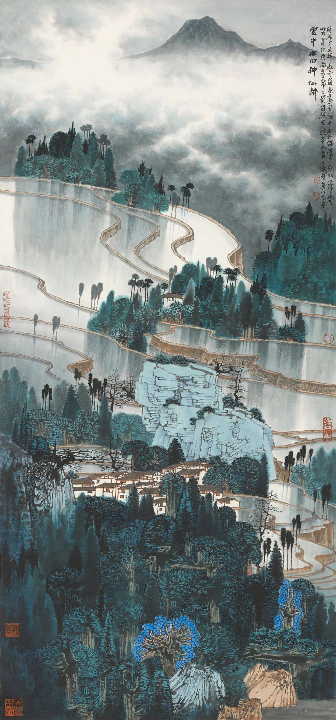 云中水田神仙耕-山水-纸本设色-48-98cm