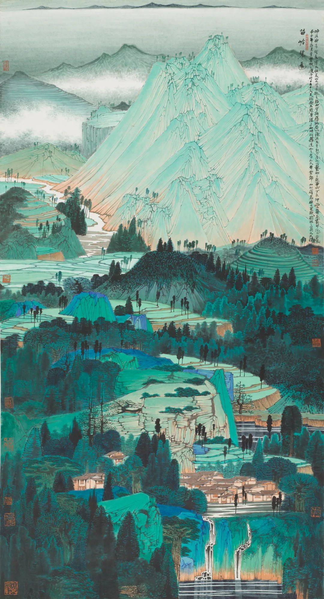 苗岭碧透-山水-纸本设色-96-180cm