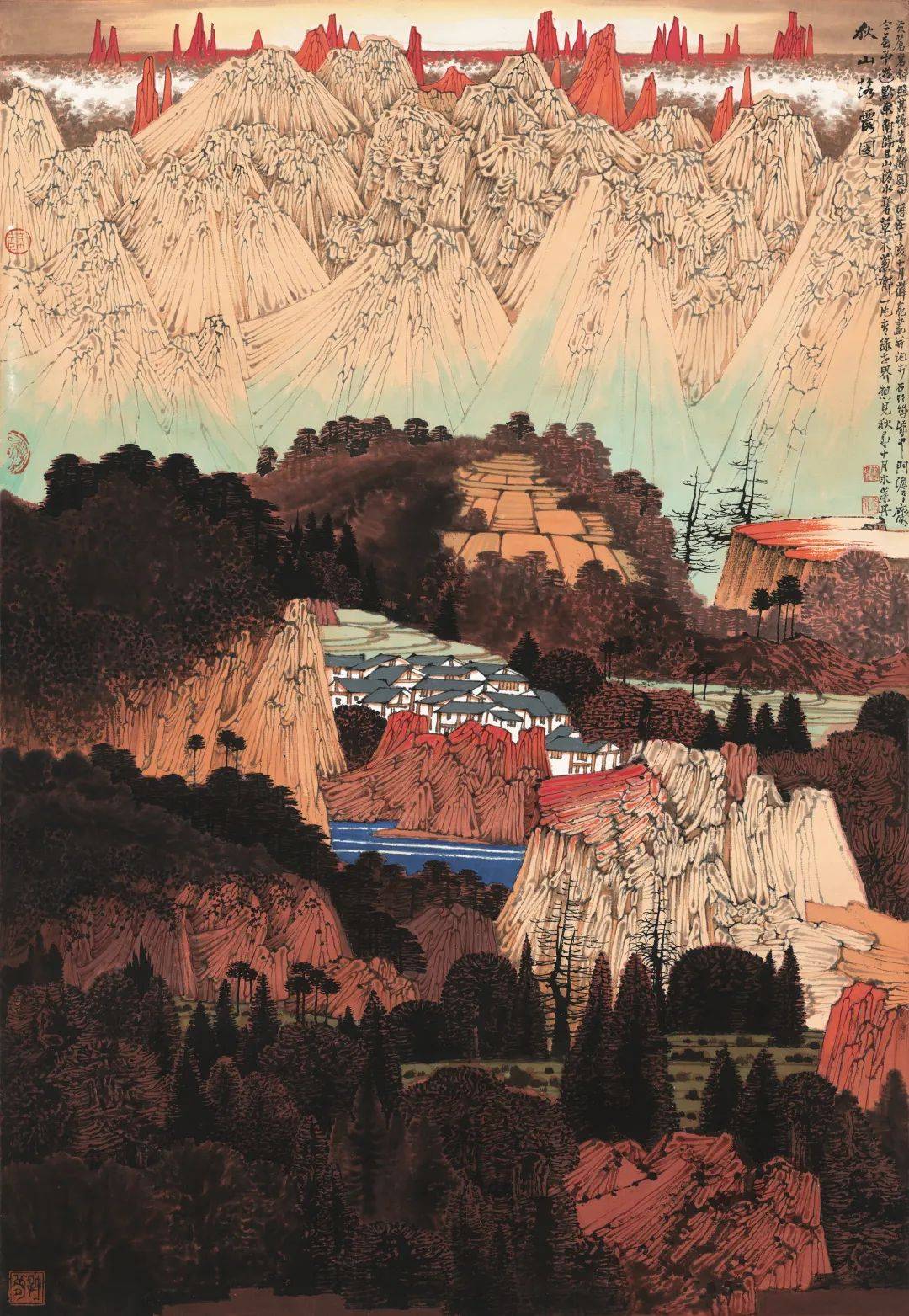 秋山红妆-山水-纸本设色-65-39cm