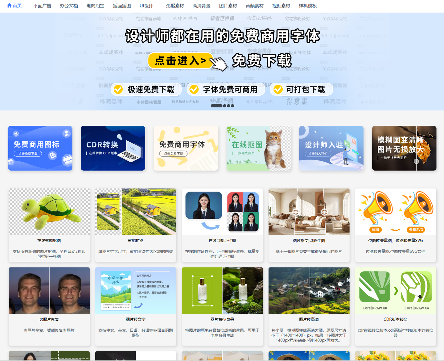 菜鸟图库是一个提供大量免费设计素材的网站,涵盖了图片、字体、图标、模板、办公等多种资源。这些素材大部分都能免费下载使用,但也有小部分是会员制,能够满足不同设计师需求。此外,菜鸟图库还提供了丰富的分类和搜索功能,方便用户快速找到所需的素材。这个网站非常适合新手入门的设计师们,赶紧收藏一波吧。