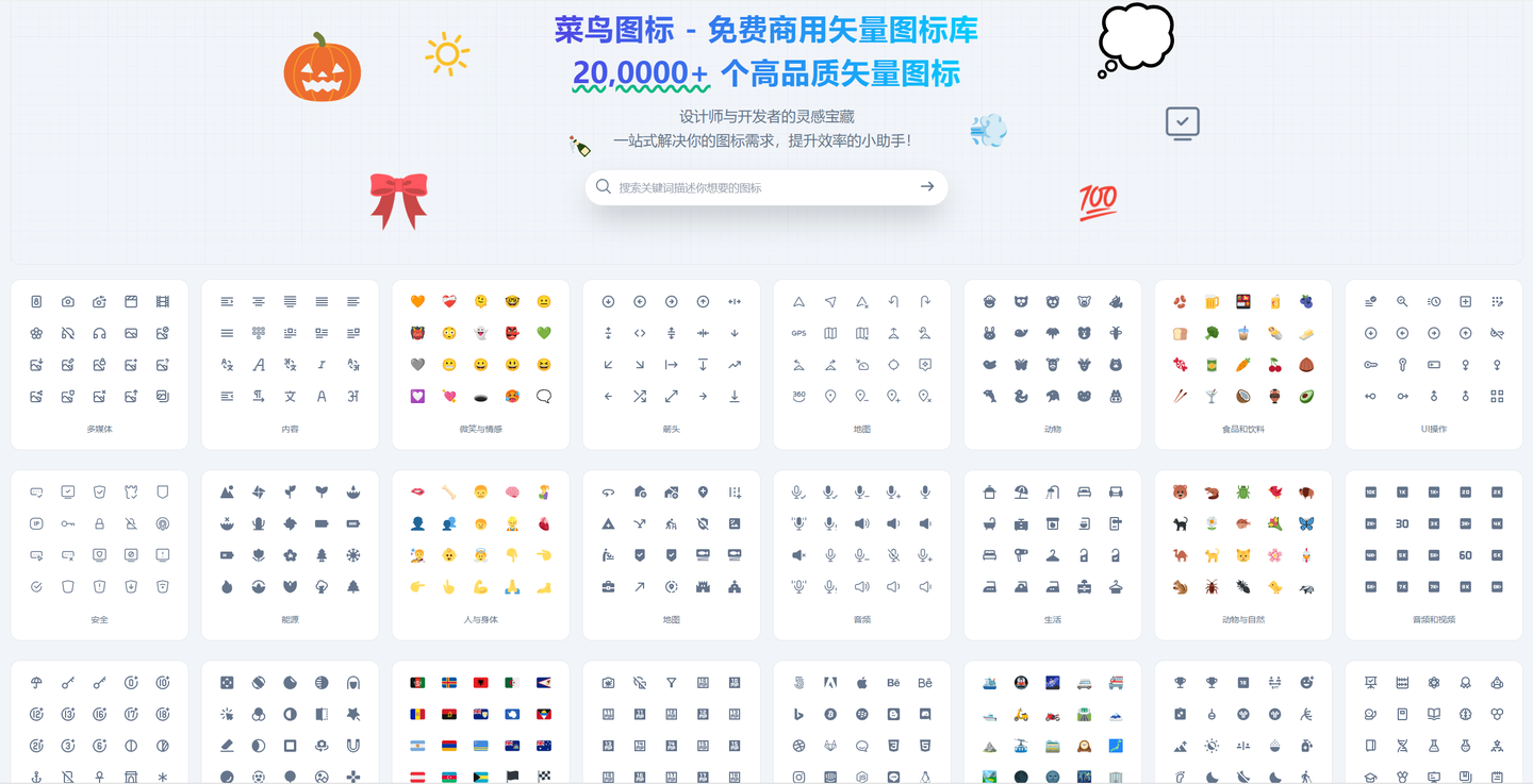菜鸟图标是一个提供免费商用矢量图标的网站,拥有拥有超过 20,0000+ 个免费商用矢量图标。这些图标都是矢量格式,可以自由放大而不失真,适合商业用途。网站使用简单,搜索方便,是设计师和开发者的好帮手。