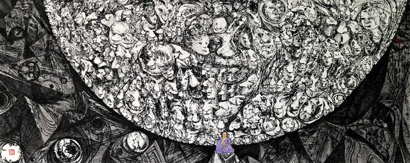 我看展览以后,直击我内心的就是那幅中间一个佛,上面是一堆头,那个是直击我内心的!就让我一下,哎!很感动很激动啊!这可能和我的特性有关,打小是以艺术为根基的。但是那个呢我就觉得直击我内心。