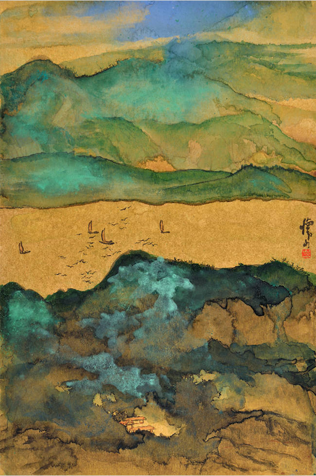本次展出的刘怀山新作,在写意笔墨基底之上,以石色泼洒,其深厚的传统蒙养、笔墨修为结合对技法和审美的不断追求创新,展示出自然、和谐的丰富美感。