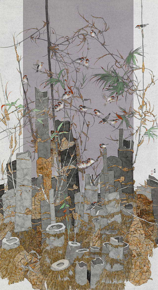 2021年《窗前新绿听鸟语》入选中国美协主办的雨花满天全中国花鸟展。