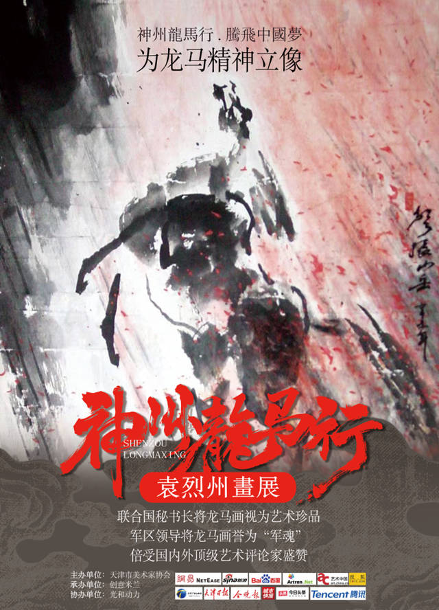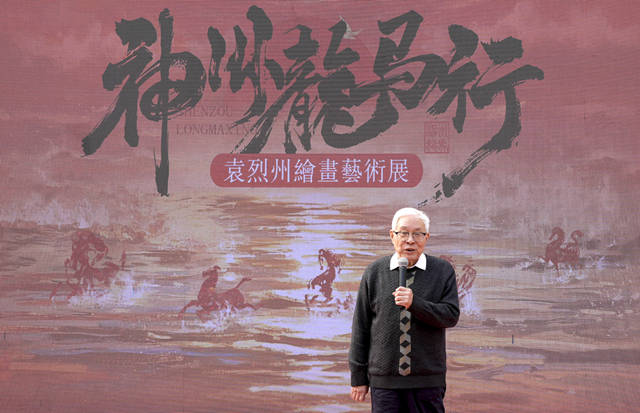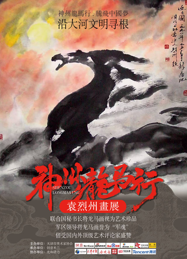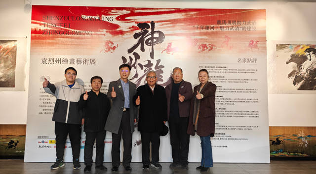 作为中国书画研究领域的权威专家,故宫博物院研究员单国强先生在开幕式上致辞,高度评价了画家袁烈州的艺术成就:“袁烈州先生的龙马艺术堪称前无来者,开创历史之先河。其笔下的龙马不是凡马,而是结合龙之气的神马,有超自然的力量,在宇宙天地间飞驰奔腾、长河山川间纵横驰骋。画面有动感、有气势,有很强的视觉冲击力。袁烈州是我在中央美院的老同学,他的写实功底很强,更可贵的是还能用写意的手法进行艺术夸张和变形,通过具象化与意象化的结合,塑造了气势雄浑的龙马形象。他也很重视环境的渲染与烘托,表现了混沌玄妙的大道本源是生生不息的源动力。他还通过传统与现代的结合,将龙马精神与时代风云相融,既传承了伏羲氏'龙马负河图'的中华文化基因,又以艺术创新手法展现民族自强、大国崛起的豪迈情怀。”单国强先生强调,袁烈州的作品有很强的时代感,其笔下的龙马不仅是艺术图腾符号,也是奋发图强、民族自信的内心写照,袁烈州先生人虽然已经不在了,但其作品的艺术价值是永存的,值得我们好好继承和发扬,这是对龙马精神自强不息的深情礼赞。