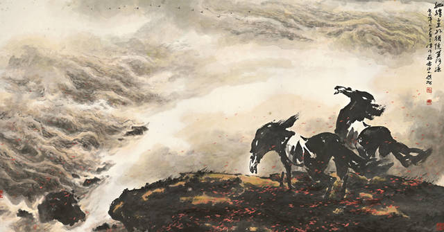 中国画创作研究院研究员黄中博士看完龙马画展评到:东方艺术的至高境界在于“意境”,袁烈州通过时空维度的解构与重组,赋予龙马意象史诗般的叙事性。其作品中奔腾的不仅是马,更是一个古老文明在现代化进程中的精神觉醒。这种将个体艺术探索与民族命运紧密相连的创作姿态,正是东方美学在当代最具启示性的实践。