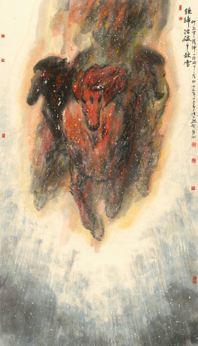 在中国传统艺术中,“龙马”作为祥瑞与力量的象征,承载着深厚的文化内涵。毕业于中央美术学院首届美术史论系的著名画家袁烈州先生(1939-2016)酷爱画马,一生创作了众多风格各异、富有创意的龙马作品。以独特的艺术视角与深厚的艺术功底,将“龙马精神”具象化为一种民族精神的图腾,其作品不仅展现了东方美学的核心特质,更以恢宏的气势与深邃的意境,成为当代中国画坛独树一帜的存在。