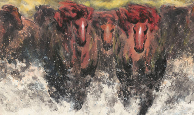 美术史论家、中央美术学院教授薛永年先生在信中评到:袁烈州恰是在需要千里马的时代,成了画马的名家之一。他在色与墨的运用上力避古人的虚淡雅逸,从西画中借鉴色彩,在泼墨泼彩中,充分发挥黑白对比与纯度色对比的作用或统调的传情效能,造成作品的强烈、奇艳、浓丽和先声夺人之感。其作品咫尺之间有千里之势,含宇宙之气。与众不同之处还在于,他在画马上开创更富于“画外意”与“意外妙”的境界,表现了驰骋四海而忠于故土的民族英魂,反映了“九州生气恃风雷”的时代脉搏,体现了“不拘一格降人才”的万众心愿。