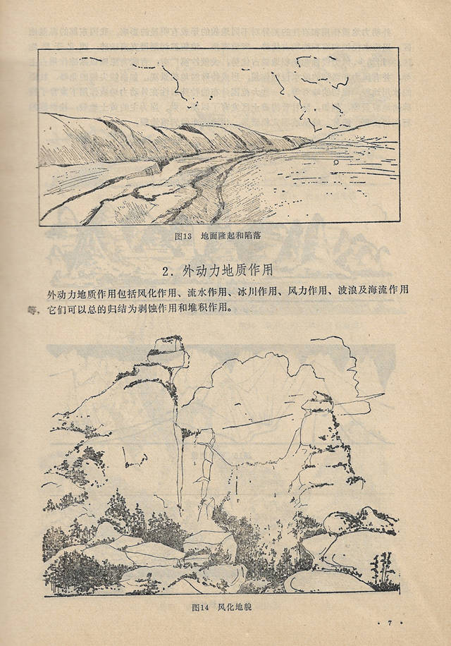 在伟大祖国960万平方公里的土地上,分布着壮丽、伟严的各种景观。西南部的青藏高原,是地壳上最雄伟高大的隆起带,气势磅礴,号称“世界屋脊”;吐鲁番盆地低于海平面154米,是我国陆地上最低的地方,也是世界最低的洼地之一;喜马拉雅山脉,喀喇昆仑山脉,昆仑山脉,天山山脉,阿尔泰山脉等,都是世界上最雄伟的山脉之一陕甘晋一带浩瀚的黄土高原,横断山区的高山峡谷,广西、云南的岩溶地貌,西北地区的风蚀地貌等等,都是世界上罕见的地貌景象。这些千姿百态的地貌的形成和发展,都是内外动力地质作用对地壳表面相互作用、相互影响的结果。