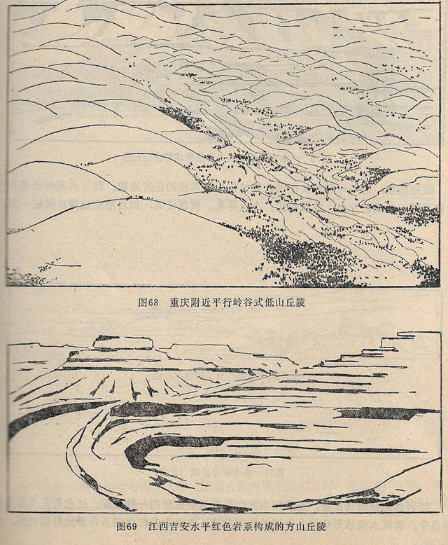 平行岭谷式的低山与丘陵:其山纹线方向与构造线方向相吻合,背斜多形成山地而向斜多形成谷地、山岭和谷地大致平行延伸,山谷相间,重复出现,成有规律的分布。我国四川东部、湘赣边区、粤东等地的低山与丘陵均属此类。