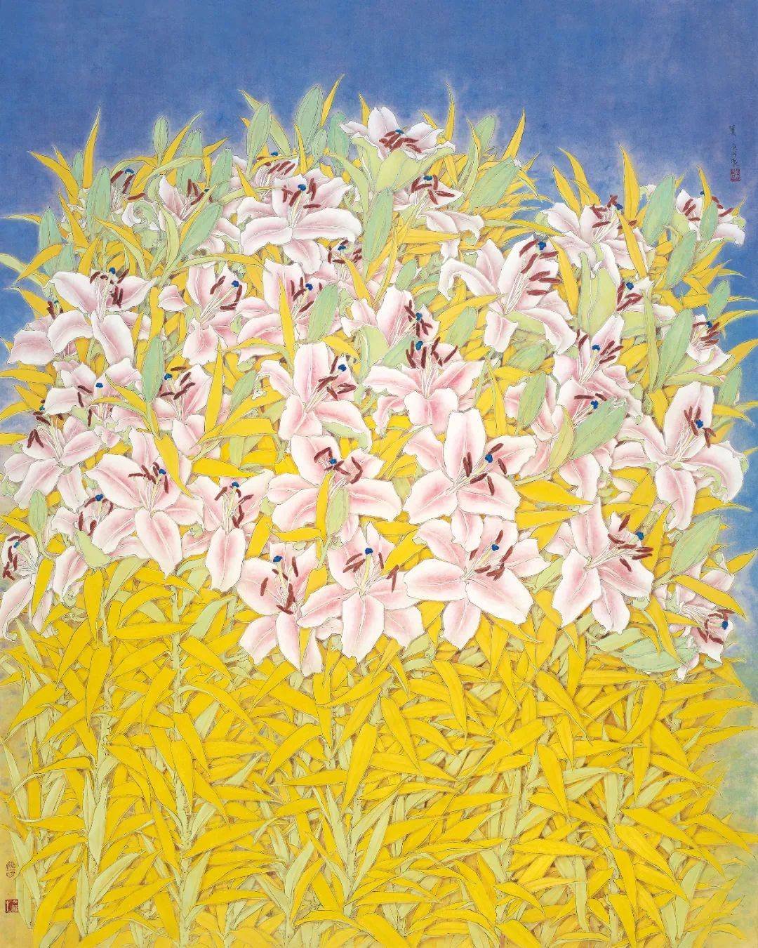 本次展览充分体现了叶丽美近年来的艺术探索成果,既有大幅力作也有小幅精品,呈现出画家整体的绘画语言和艺术风格。叶丽美突破传统工笔画范式,在当代语境下,以东方美学为基石,传承中国花鸟画优秀传统的同时,又将现代审美意识融入中国工笔画的创新探索之中,并打开了属于自己特点的艺术面貌。她的作品以自己独特的视角,对所表现的花鸟草木予以现代人文精神的观照,使艺术作品呈现出具有个人标识的艺术特质和品格。