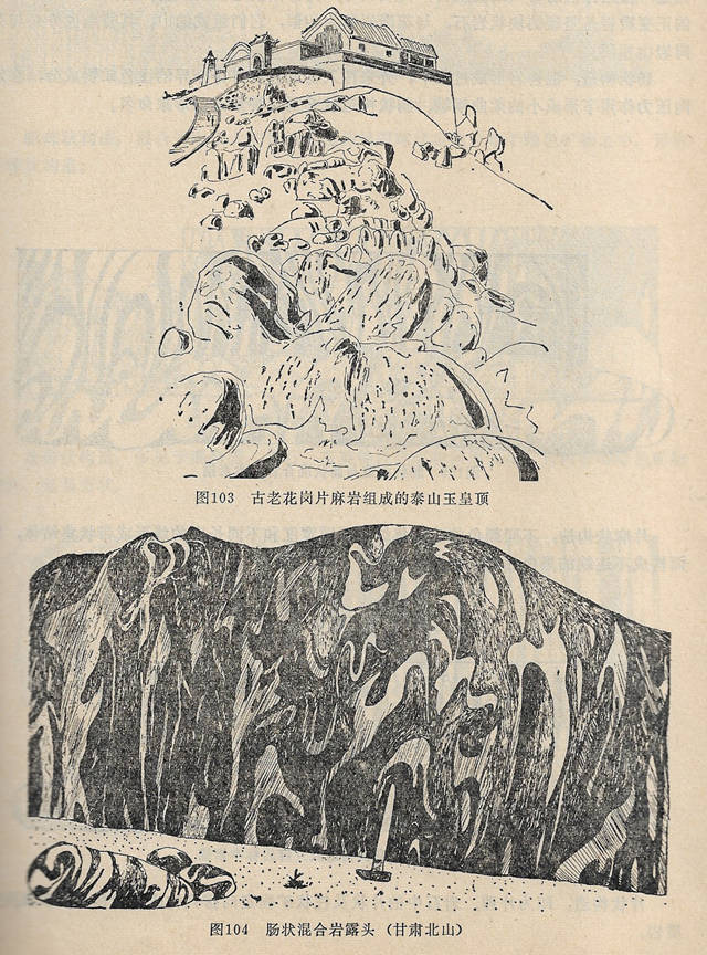 肠状构造:混合岩形成过程中,外来注入物或岩石自身分异的浅色矿物成分,在定向压力作用下形成小的柔曲褶皱。肠状构造就是对这种形态的形象命名。