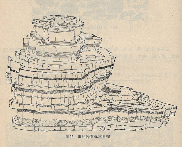 层理是沉积岩最显著的特征。在沉积岩的悬崖上或采石场中,可以看到厚度不等、颜色和成分不相同的岩层相互平行地叠置在一起,它们之间有清楚的层面。在层面上,有时可以保留着海浪的波痕、雨痕和干早地区淤泥地上的龟裂纹,甚至还有动物行走或搏斗过的遗迹。