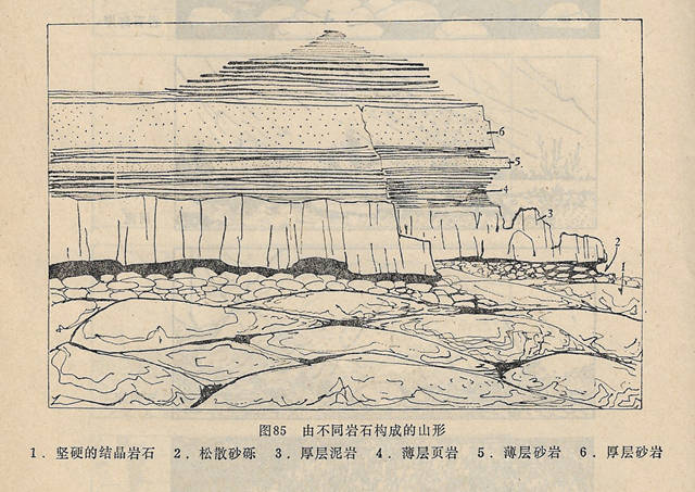岩石(包括未固结的松散沉积物)是构成地壳的基本物质,它也是形成地貌的物质基础,不论内动力地质作用或外动力地质作用,都要通过岩石才起作用,所以岩石的性质在一定程度上,决定着地貌形态的发育,地貌特征也只有通过岩石才能表现出来。
