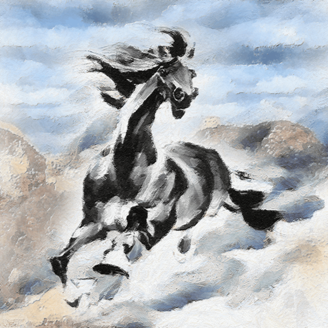 马到成功 油画布 42x42cm