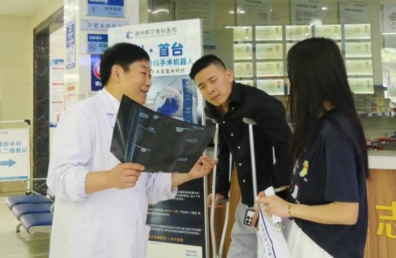 另一位患者刘先生,因意外车祸致严重胫腓骨骨折。来我院接受数字化骨科微创手术后,术后六个月,刘先生迎来了康复的重要时刻——拆除外固定架。令人惊喜的是,他体内无钢钉、无钢板,当天就灵活自如地前来医院。回想起当初完全不能动弹的日子,他怎么也没想到治疗周期如此快。刘先生难掩激动之情,感慨万分。