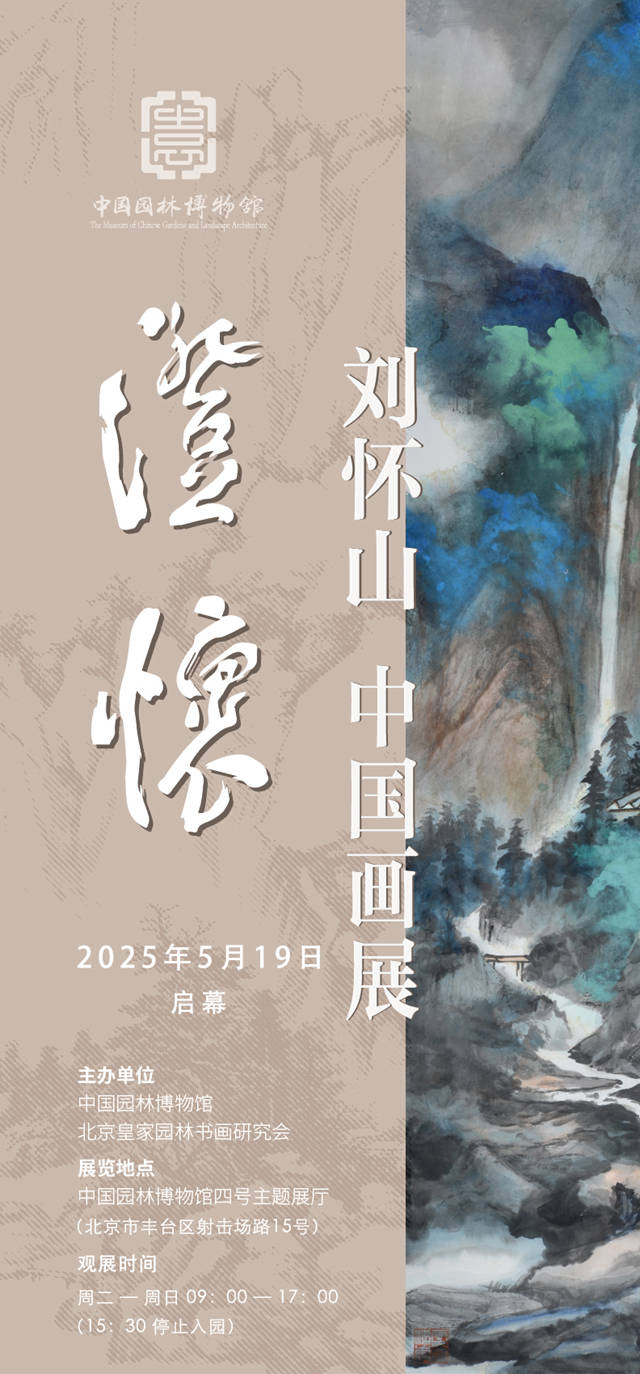 “澄怀——刘怀山中国画展”将于2025年5月19日上午10时于中国园林博物馆四号主题展厅启幕。本次展览由中国园林博物馆、北京皇家园林书画研究会共同主办,分为“江山行吟”“翎羽生韵”“形神入化”三部分,汇集刘怀山先生山水、花鸟、人物等多类题材近百幅佳作。刘先生以深厚的传统蒙养、笔墨修为,在写意笔墨基底之上,巧用泼彩泼墨技法,塑造出可赏、可游、可居的园林意境,深度阐释了书画艺术与园林文化的交融。同时,园博馆将刘怀山先生的多款画作以文件夹、卷轴冰箱贴等形式打造出近10款精美文创,让观众在家中以别样的方式欣赏画作,为家中多添几分传统艺术氛围。