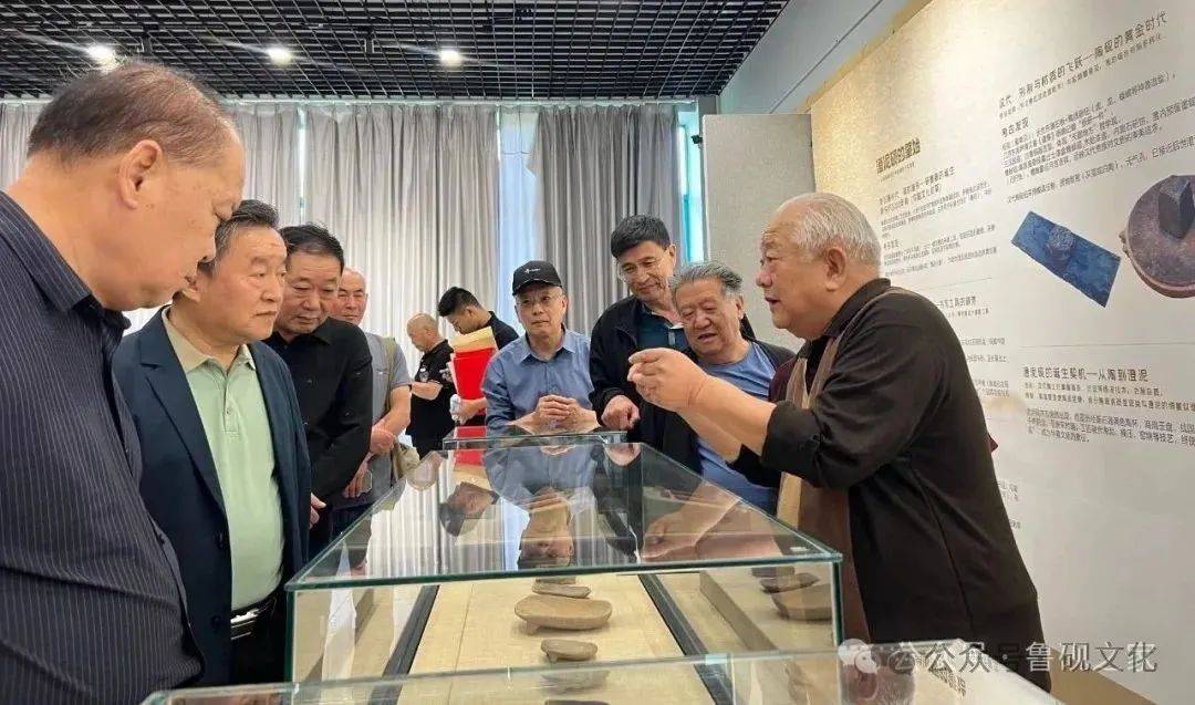 山东省鲁砚协会顾问、砚文化学者王文海(右一)向嘉宾作介绍讲解