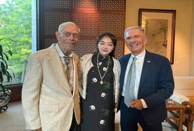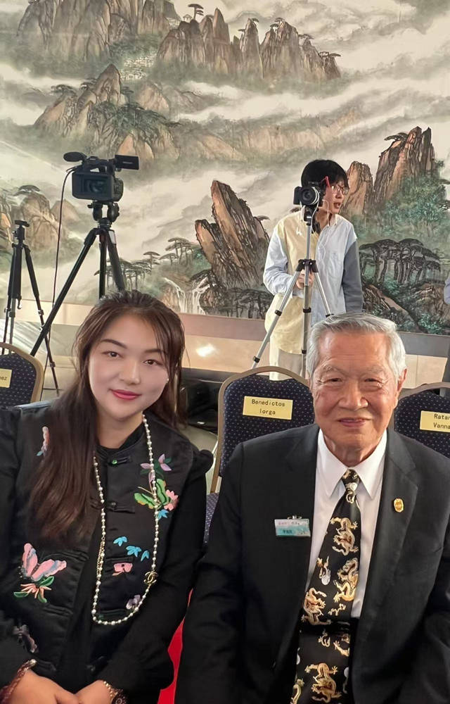 3、 2024年5月16日在中国驻美大使馆举办的中国相册“纪念中美友好人士颁奖典礼上,师帅博士向103岁高龄的飞虎队老兵哈里·莫耶(Harry Moyer)赠送了纪智补全版清明上河图卷轴。哈里·莫耶(Harry Moyer)所在的飞行中队受陈纳德将军的指挥,掩护用于轰炸日军的美军B-29重型轰炸机群的安全。飞虎队员与中国军民并肩作战,书写了中美关系史上的珍贵一页,也受到了中国人民的深切怀念。哈里·莫耶激动地说:“四海之内皆兄弟也。中华民族之所以在世界有地位、有影响,不是靠穷兵黩武,不是靠对外扩张,而是靠中华文化的强大感召力和吸引力。《清明上河图》像纪录片,又像风俗百科全书,记录了中国十二世纪北宋都城汴梁在清明时节社会各阶层人民的生活景象。反映北宋繁荣社会经济生活中普通百姓的生活面貌,具有重要的历史考证价值,是中国古代风俗画中的杰出作品。希望我有生之年能到开封亲眼看看。”