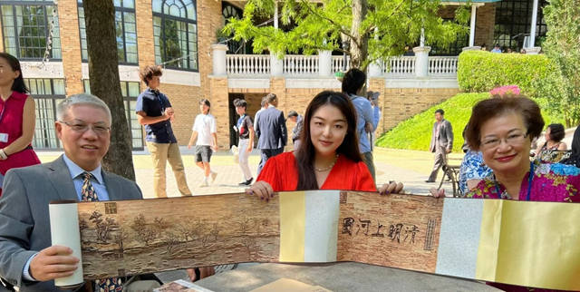 北美清明上河图研究会向美国民众完美展示了聚典阁文化产业公司的传统特色文创产品——纪智补全版清明上河图卷轴,弘扬文创产品背后蕴含着的传承力量和文化自信,极大推动优秀传统文化借助文创产品出海传播的巨大潜力。