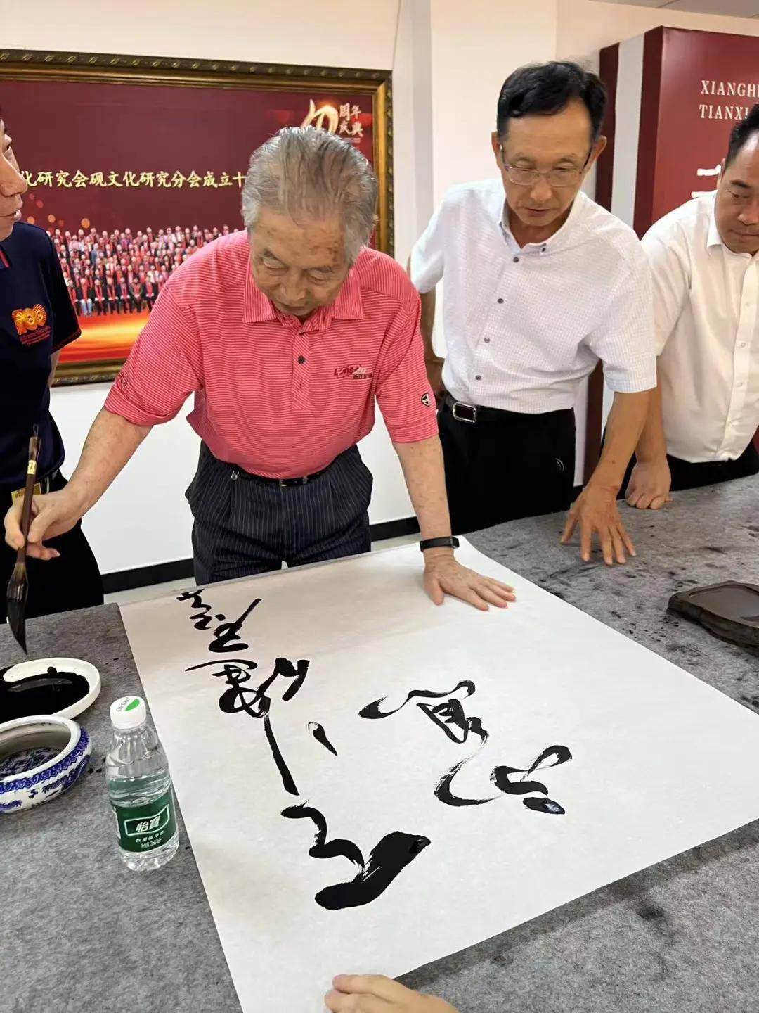 参加此次活动的嘉宾有:原国家物资部副部长、全国工商联党组原副书记、副主席、华夏文化促进会书画分会名誉顾问桓玉珊,砚文化研究会创会会长、武警部队原副司令员刘红军中将,原南京工程兵工程学院政委、中国楹联学会顾问、华夏文化促进会书画分会名誉顾问孙之贵将军,香山红叶书画院老院长李春明先生,原驻港部队文工团团长、国家一级编导、华夏文化促进会书画分会名誉顾问姜乃元将军,砚文化研究会会长助理、原武警重庆总队副司令员孙克利,砚文化研究会副会长、文化和旅游部离退休人员服务中心原副主任王炳义,中国美术家协会理事、中国华侨画院院长张清智,原中央和国家机关书法家协会副主席兼秘书长尹祥君,国家重大项目专家、CIGIS文旅规划研究院创始院长蔺道军,原北京西城文旅局一级调研员、北京文旅协会专家、华夏文化促进会书画分会顾问王顺,华夏文化促进会书画分会顾问李正钢,砚文化研究会副会长金彤,砚文化志愿者卢敏,砚文化志愿者廖振华,原第二炮兵审计局宋世友大校,原国家公安部刑事技术中心领导、北京湖社画会副秘书长李春来,华夏文化促进会书画分会执行秘书长许兵,国际中国书画家交流促进会副秘书长、中国书法家协会会员吴马,华夏文化促进会书画分会副秘书长、中康瑞臻文化传媒总经理任咏斌,白俄罗斯国家文联中国首席代表刘瀚锴,北京湖社画会秘书长、中国电视剧制作产业协会少年工作委员会秘书长张惟,丹光碧叶有限公司董事长、江苏省收藏家协会副会长刘燕,中国国家画院美术师萌芳,红山画院院长张景峰,砚文化研究会秘书长阴巍,北京市顺义区美术家协会主席魏宗安,北京市顺义区美术家协会秘书长刘凤池,北京砚台文化博物馆馆长于忠文,华夏文促会书画分会办公室副主任张宗良,华夏文促会书画分会外联部副主任、七宝阁书院院长袁源,华夏文化促进会书画分会外联部副主任常和书,北京希福电气安装工程有限公司副总经理张建设,砚文化研究会办公室主任孙德勇,北京砚台文化博物馆副馆长刘佳娜,来自山东青岛、高密的嘉宾青岛黄海学院副校长马延岳,山东高密收藏家协会会长单既建,山东省鲁砚协会非遗传承研究分会会长张慧秀,青岛黄海学院博物馆负责人毛波,以及主办单位高俐妮、巩玉兆、程宣瑞、刘杰睿,社会各界人士高志华、丁月、 王晋强,还有范立忠先生亲朋好友等近百人参加。