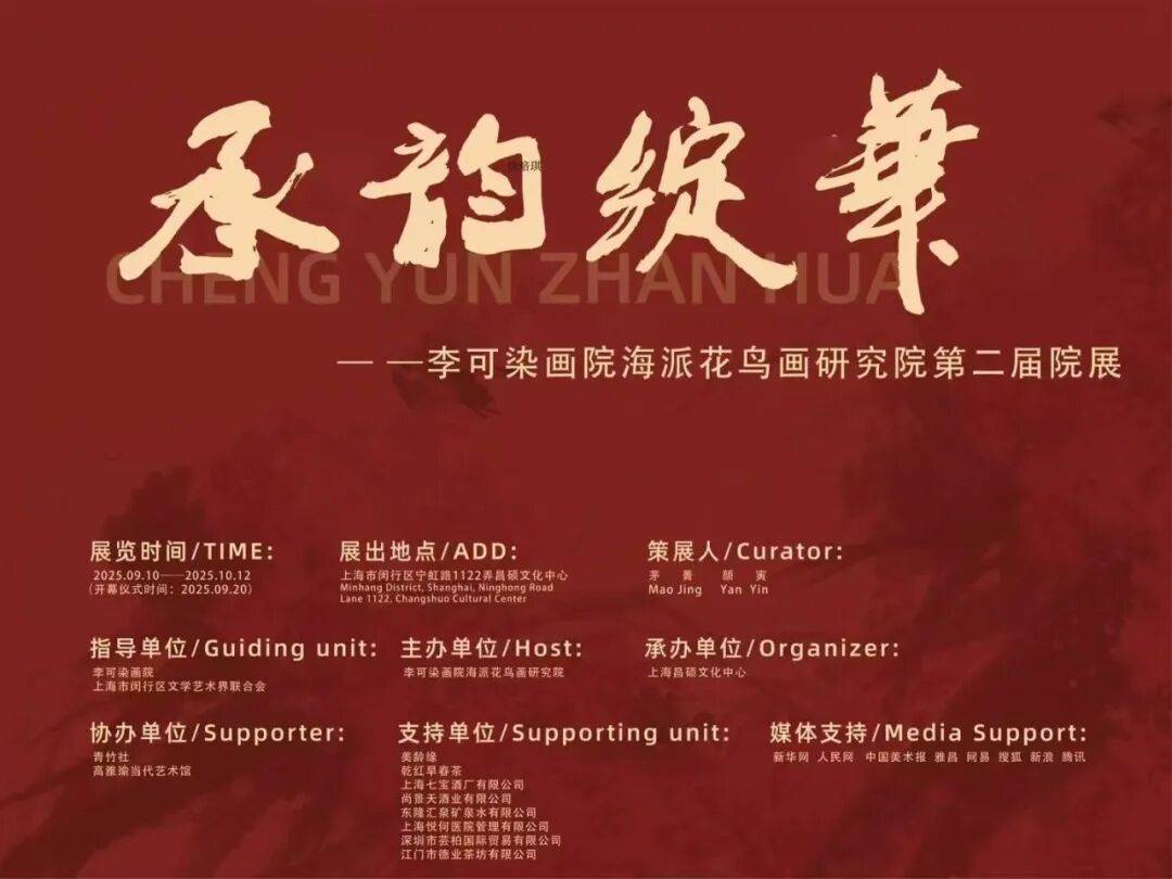9月20日下午三点,「承韵·绽华」第二届李可染画院海派花鸟画研究院在上海昌硕文化中心举行了盛大的画展开幕仪式和揭牌仪式,汇集了研究院顾问团、理事会成员及会员们的精品力作。展览既呈现了对传统艺术精髓的深刻理解,又展现了当代艺术创作的多元探索。参展作品涵盖中国画、书法、工艺美术等多种艺术形式,在传承与创新之间构建起丰富的对话空间。本次活动由李可染画院、上海市闵行区文学艺术界联合会主办,昌硕文化中心、李可染画院海派花鸟画研究院承办,青竹社、高雅瑜当代艺术馆协办。