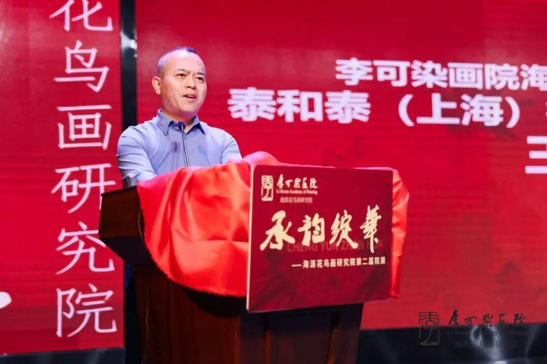 李可染画院海派花鸟画研究院院长梁文尧进行发言和致感谢词