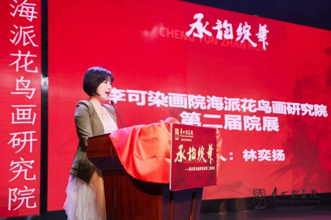 在接下来的揭牌仪式中,李可染画院海派花鸟画研究院执行院长颜寅作为嘉宾为海派花鸟画研究院潮汕创研基地熊绍斌,海派花鸟画研究院景德镇创研基地孙科磊,海派花鸟画研究院厦门创研基地高雅瑜、陈青莉,海派花鸟画研究院宜兴创研基地曹亚萍,海派花鸟画研究院美龄创研基地余红霞进行揭牌。最后李可染画院海派花鸟画研究院执行院长颜寅进行发言。