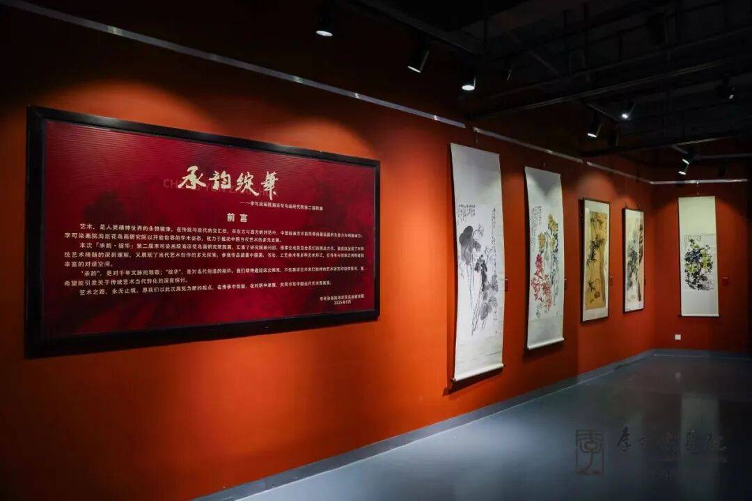 揭牌仪式结束之后,与会嘉宾到展厅参观了展览作品,李可染画院海派花鸟画研究院代表成员在会议室召开了座谈会。"承韵",是对千年文脉的致敬;"绽华",是对当代创造的期许。我们期待通过这次展览,不仅展现艺术家们独特的艺术语言和创作思考,更希望能引发关于传统艺术当代转化的深度探讨。 艺术之路,永无止境。愿我们以此次展览为新的起点,在传承中创新,在对话中发展,共同书写中国当代艺术新篇章。