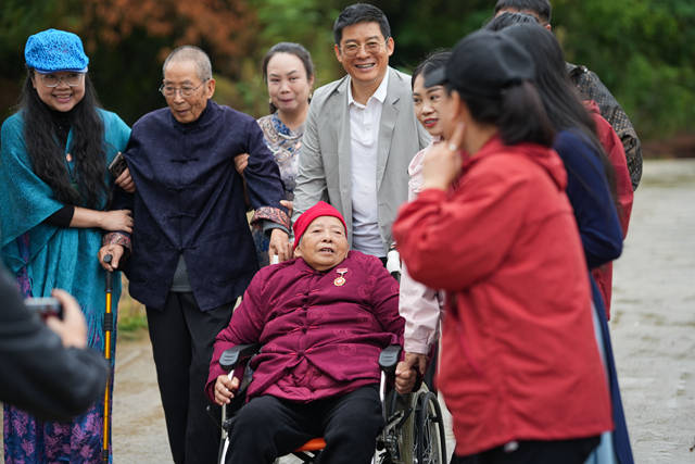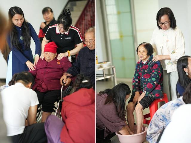 值得关注的是,在资深导演、微电影《新二十四孝》总发起人蒋永为团队的策划下,活动同步开展了孝文化传播实践。“缘家人”团队不仅在南岳为父母祈福,更前往永州祁阳探望唐健文年近百岁的双亲及其他缘家庭长辈。大家以“缘爸爸”“缘妈妈”相称,通过歌舞、家常、共餐、为父母洗脚按摩等朴实方式践行孝道,相关场景被收录入影视作品,推动传统美德的当代传播。