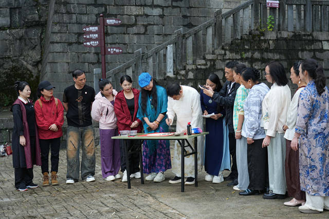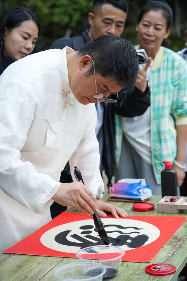 活动先后在祝融峰顶、南岳万寿广场、石鼓书院等地举行,吸引了从“50后”到“00后”的多代际观众,包括游客、书法爱好者、大学生及外国友人。唐健文现场讲解姓氏渊源与文字演变,将学术知识转化为生动故事,激发参与者对中华文明根脉的浓厚兴趣,现场互动热烈,合影氛围融洽。