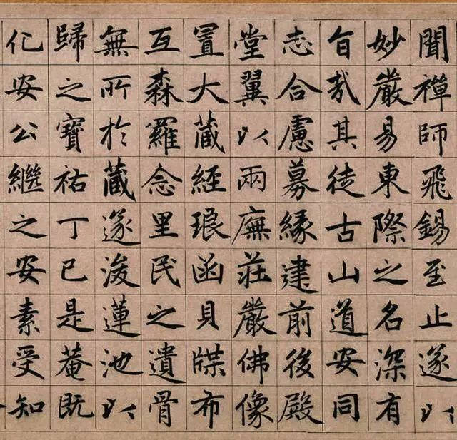 赵孟頫书法自成一派,世称“赵体”或“松雪体”,留下大量书作,在中国书法史上具有承上启下的作用,凭借其个人魅力,聚集了一大批书家,影响了整个元代的书法,是元代书法的最杰出代表,凭借文艺、书画而得到元几代帝王的赏识,官至一品。 《湖州妙严寺记》卷首赵氏自书小篆题额,正文楷书秀丽端庄,法度大气,笔势舒展灵活精妙。具有极高的书法造诣,是后人研习赵氏楷书的最佳范本。此卷为赵孟頫楷书典型之风格,中正内敛、法度精严。楷书中带有行意,动静相合。观此卷书法,一是在用笔上,将晋唐各家精髓糅合得恰到好处,不露痕迹。二是结构上规整有度,开合适当。三是风格上刚柔相济,以柔为主,绵中有针。