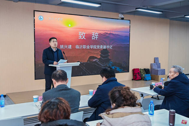 姚兴建在致辞中指出,近年来,在市委、市政府的正确领导和社会各界的大力支持下,临沂职业学院全面落实立德树人根本任务,办学质量与服务地方发展能力持续提升。学校高度重视校园文化建设,建成多个特色展馆与工作室,打造了多项文化品牌活动,成功获批国家级众创空间等多个省级及以上平台基地。